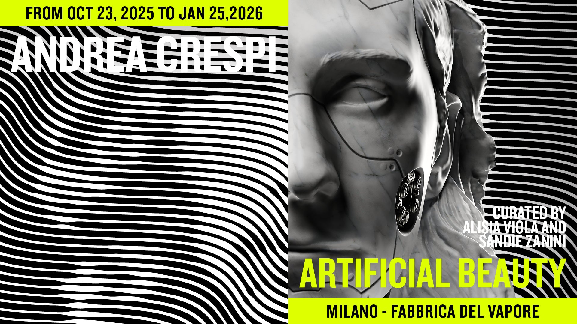 Artificial Beauty is a solo exhibition by Andrea Crespi, curated by Alisia Viola and Sandie Zanini, hosted at Fabbrica del Vapore from October 23rd, 2025 to January 25th, 2026.